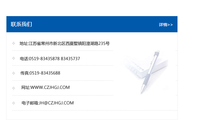地址:常州市新北區友邦商務大廈1幢16、17層  電話:0519-85101652  傳真:0519-85112595  郵編:213022  網址:www_cz-jiayue_cn.sh-sycarcity.com  郵箱:xiajifengaa@163.com